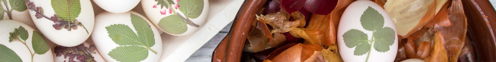 Accanto a colori artificiali che sono acquistabili nei negozi negli ultimi anni è diventato molto popolare il metodo praticato dalle nostre nonne che usavano i colori della natura per tingere le uova. Come funziona: Su uova bianche vengono applicate foglie, spezie, erbe oppure fiori primaverili, inumidendo il motivo vegetale con un po' d’acqua così che rimanga appiccicato sul uovo. Poi il uovo viene messo in una calza di nylon leggera ed allacciato per bene. Si usano verdura e frutta per creare un essenza di colore (per la preparazione vedi istruzione) che serve per tingere le uova. Le uova in calza sono cotte a sodo in acqua e poi vengono immerse nell’essenza colorante liberata in anticipo dagli ingredienti. Lasciarli nell’essenza per al minimo 30 minuti così che si colorino bene. Girare le uova ogni tanto per ricevere una colorazione uniforme. Per uno splendore elegante delle uova frizionarle con un panno oleato oppure con un pezzo di cotenna di speck.